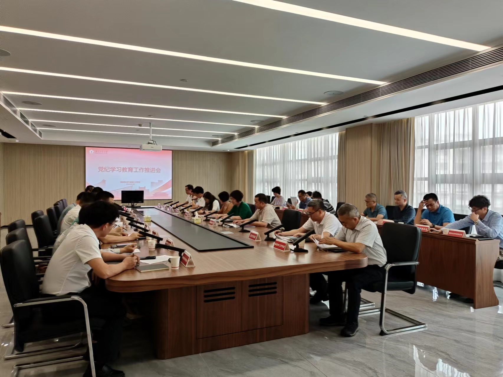 4月26日下午,学校召开党纪学习教育工作推进会,深入学习贯彻习近平总书记关于党纪学习教育的重要讲话和指示精神,贯彻落实中央党的建设工作领导小组会议和中共中央办公厅印发《关于在全党开展党纪学习教育的通知》精神,传达学校党委常委会启动部署党纪学习教育的主要情况及要求,深入部署党纪学习教育在基层党组织以及各单位、部门的具体落实与推进事宜。