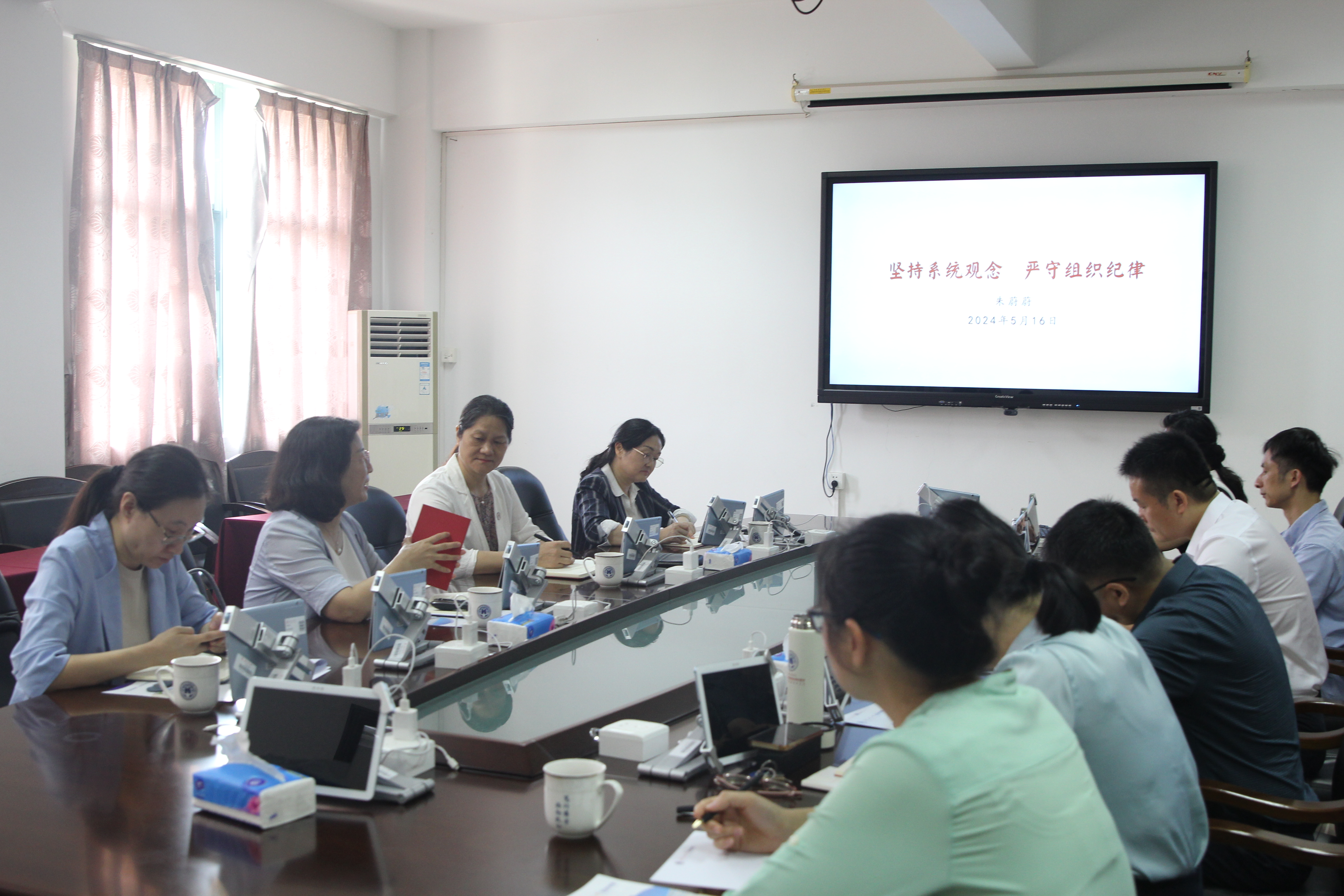 为推进党纪学习教育,5月16日,学校党委副书记朱蔚蔚在龙洞校区B北305为我院讲授题为《坚持系统观念,严守组织纪律》的党纪学习教育专题党课。会议由我院党委书记林伟英主持,学院党委理论学习中心组成员、党支部书记代表参加了此次学习。