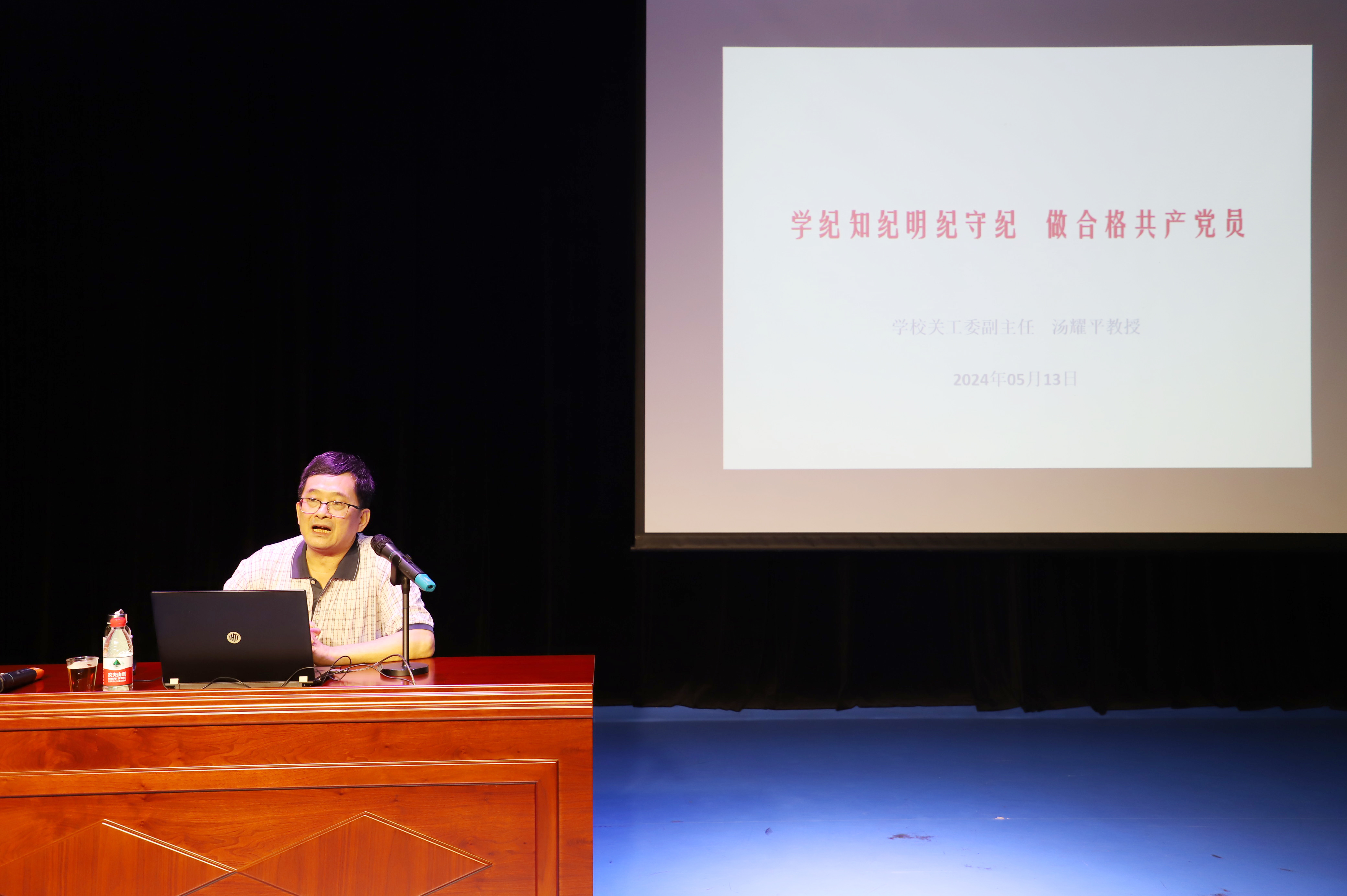汤耀平指出,在全党范围内开展党纪学习教育,旨在全面从严治党。我们要从党纪基本内涵读懂“纪严于法”的精髓要义,全面把握《中国共产党纪律处分条例》精神实质,教育引导党员学纪知纪明纪守纪,做合格的共产党员。同时,深入剖析了学习《中国共产党纪律处分条例》要准确把握的四种关系,努力营造干事创业的良好环境。汤耀平强调,深化党纪学习教育要从三个方面着力:一要提高思想免疫力,破解思想“无惧”,知之深切,才能行之自觉;二要提高行动免疫力,破解心中“无戒”,心有戒尺,行有所止;三要提高作风免疫力,破解行动“无为”,重在执行,增强制度的生命力。