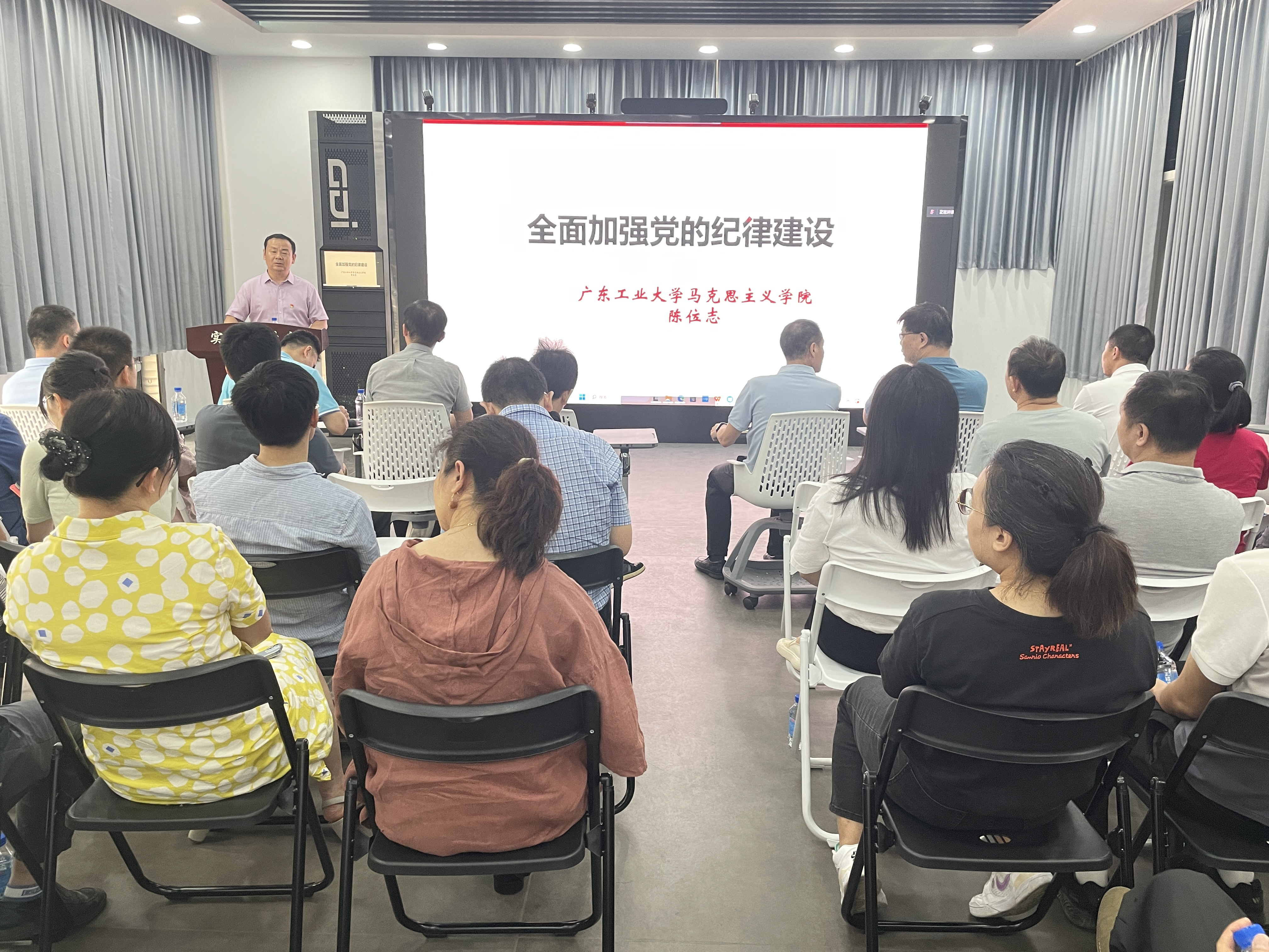 马克思主义学院副院长陈位志教授在学习会上作《全面加强党的纪律建设》为题的辅导报告。他从全面传承党的纪律建设的历史经验、深刻理解党的纪律建设的创新成果、准确把握党的纪律建设的实践要求等三个方面,详细讲述党的纪律建设在不同历史阶段的发展,充分认识纪律建设的重要性,以党的创新理论为指引,严守党的政治纪律和政治规矩,强化经常性纪律教育,学纪、知纪、明纪、守纪。报告政治站位高、理论性强、内容丰富、分析透彻。陈位志教授深入浅出的讲解方式,使广大党员干部对党纪学习教育的核心要义和精神实质有了更深刻的理解和把握。