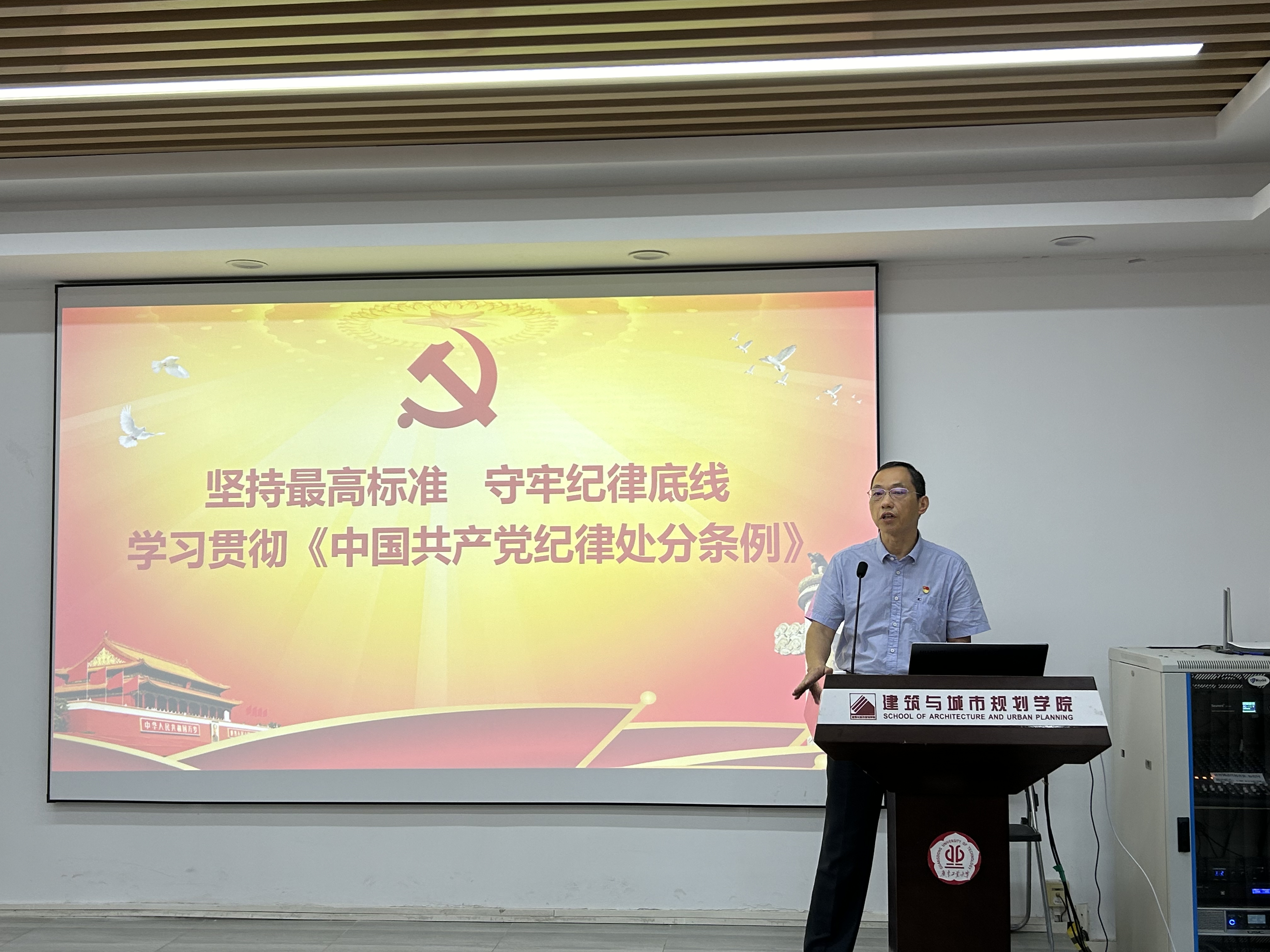为贯彻落实学校党纪学习教育的工作部署,推动党纪学习教育走深走实,6月4日下午,我院在东风路校区2-314报告厅召开党纪学习教育专题辅导会暨党委理论学习中心组(扩大)会议。学院党委书记王伟文作题为《坚持最高标准 守牢纪律底线》的辅导报告。学院党委副书记李晓伟主持会议,全体教师党员参会。