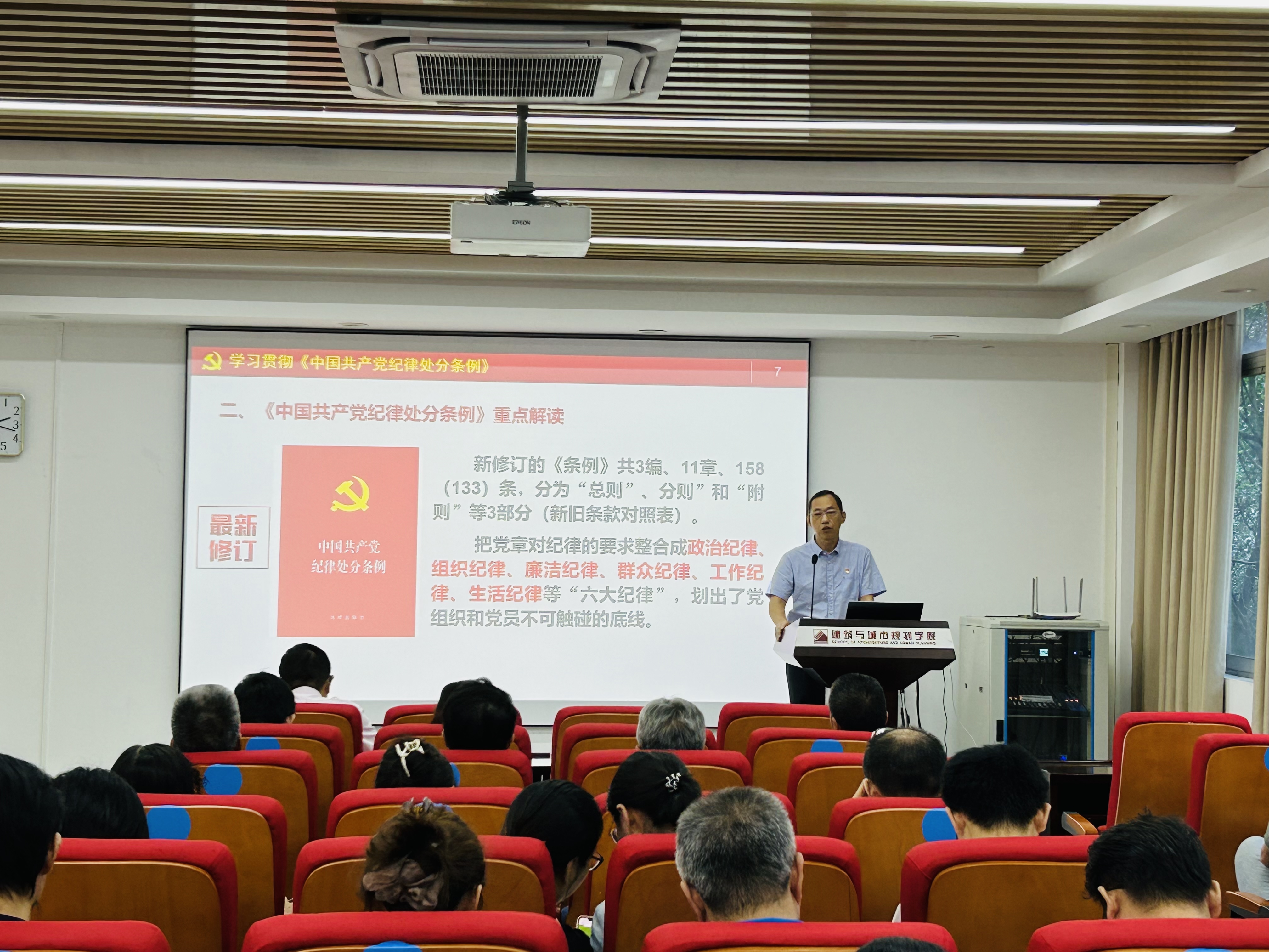 会上,王书记从新《中国共产党纪律处分条例》修订背景、修订的主要内容以及“六大纪律”主要违纪行为等几个方面做了详细的解读,并结合身边事,进一步强调了严明纪律要求、强化纪律意识和规矩意识、增强纪律自觉的重要性和紧迫性,为全体教师党员上了一堂既有理论高度又有实践厚度的纪律教育党课。