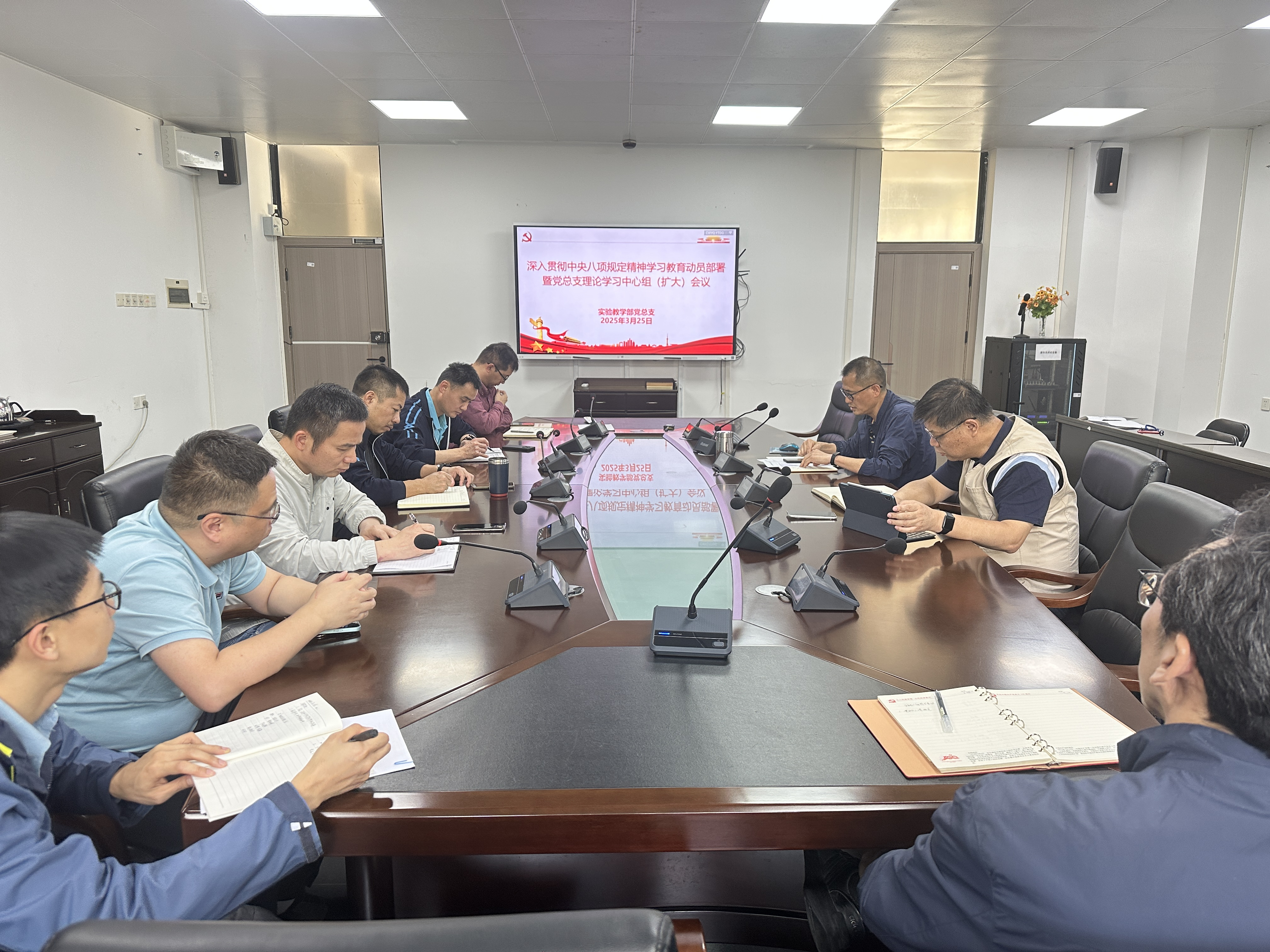3月25日下午,实验教学部召开深入贯彻中央八项规定精神学习教育动员部署暨党总支理论学习中心组(扩大)会议,党总支全体委员及各中心党支部书记参加会议。党总支书记陈伟民主持会议。