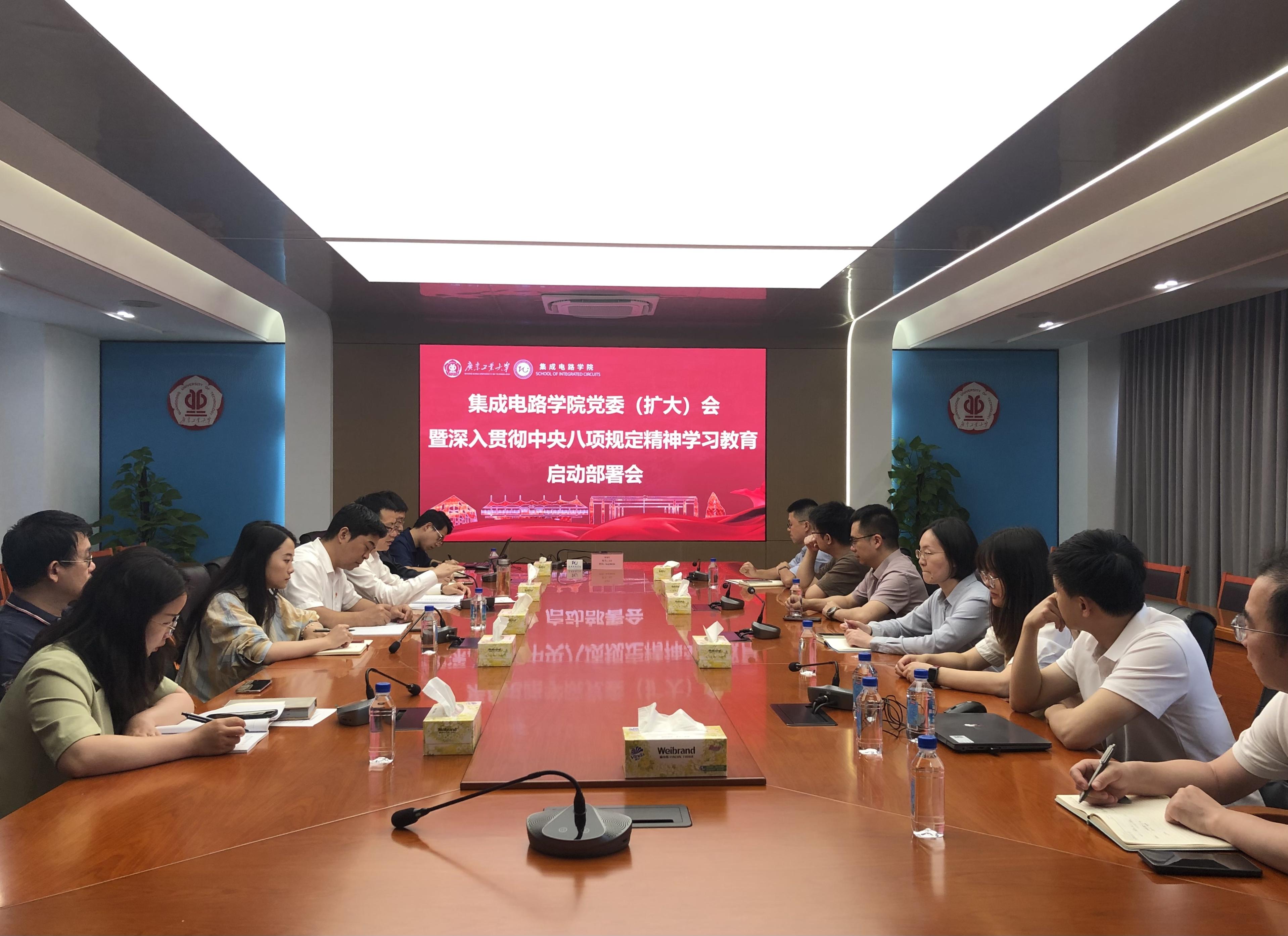 3月26日,集成电路学院召开党委(扩大)会暨深入贯彻中央八项规定精神学习教育启动部署会,学院党委领导班子及全体党支部书记参加会议。会议由集成电路学院党委书记沈彬主持。