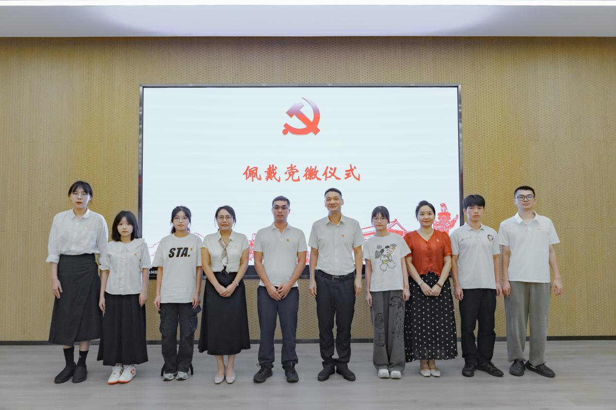 “让初心薪火相传,把使命永担在肩”,在老党员为新发展党员佩戴党徽环节,杨文新、胡静、柯婷、杨博、余乐等老党员为新发展党员代表佩戴党徽。随后杨文新带领新发展党员进行入党宣誓,老党员重温入党誓词。全体党员面向党旗,举起右手,紧握拳头,在铮铮誓言中重温入党初心,淬炼党性修养,坚定理想信念,牢记职责使命。