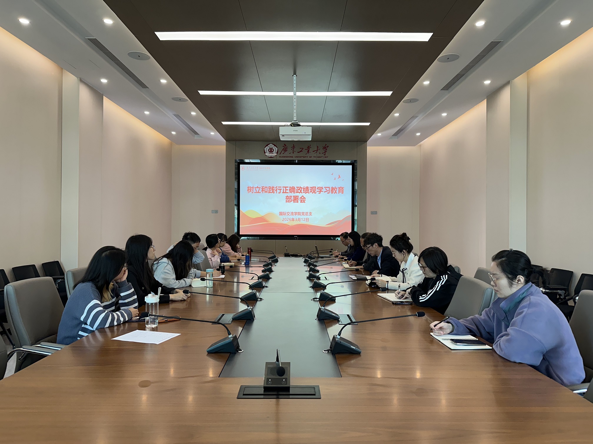 3月12日下午,国际交流学院召开树立和践行正确政绩观学习教育动员部署会暨院党委理论学习中心组(扩大)学习会议,深入学习贯彻习近平总书记关于树立和践行正确政绩观学习教育的重要讲话和重要指示精神,传达学习中央、省委党的建设工作领导小组相关会议精神,落实学校党委部署要求,结合“十五五”发展规划对学院学习教育工作进行安排。会议由学院党总支书记黄鑫城主持。