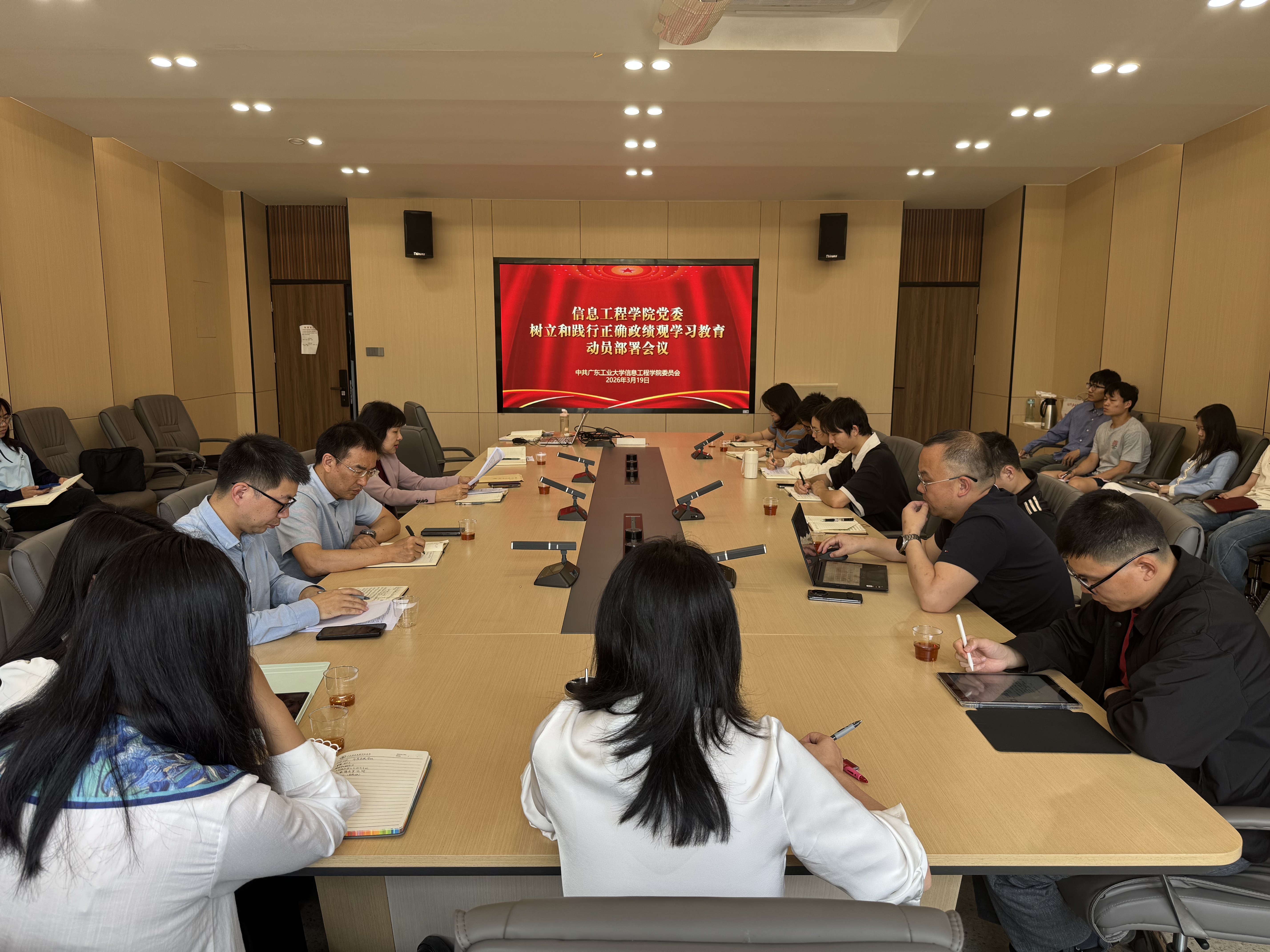3月19日,信息工程学院党委在工学一号馆201会议室召开树立和践行正确政绩观学习教育部署会。学院党政班子成员、党委理论学习中心组成员、全体党支部书记、辅导员参加会议,会议由学院党委书记邵际珍主持。