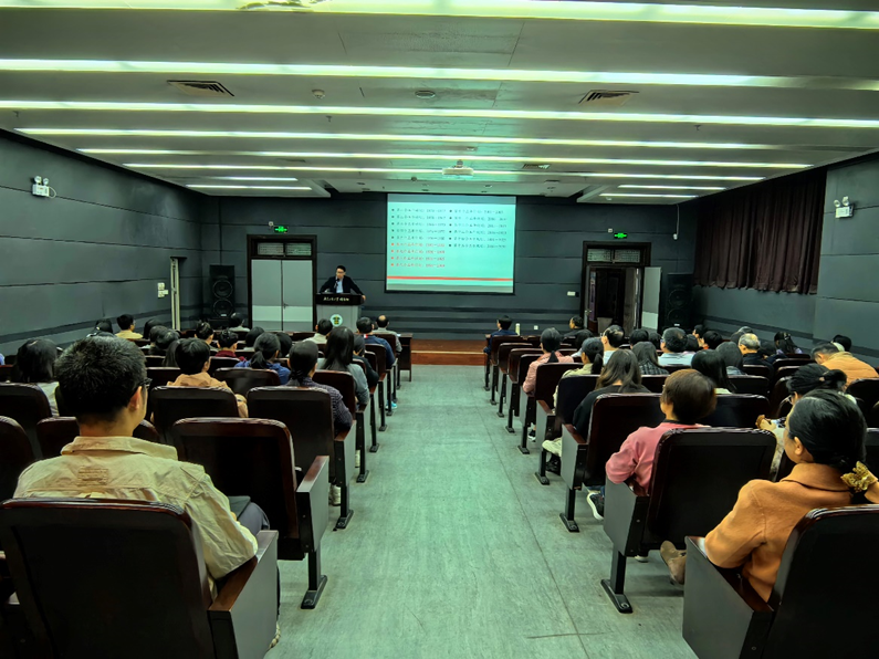 为深入学习贯彻党的二十届四中全会精神,11月26日,图书馆党总支在图书馆大学城校区馆负一楼报告厅开展党的二十届四中全会精神专题学习,特邀我校马克思主义学院副院长张中鹏副教授作专题辅导报告。图书馆党总支书记赵振辉主持,全体职工参加学习。